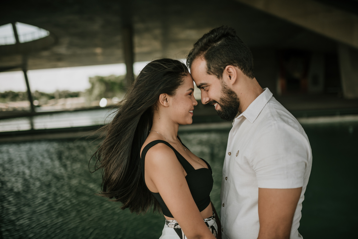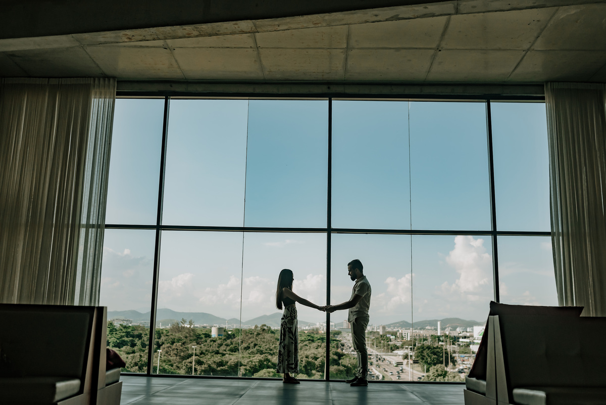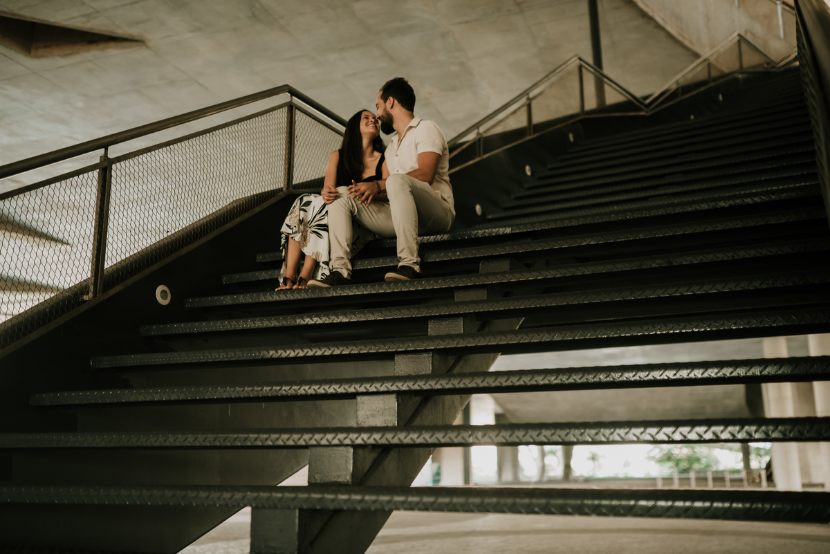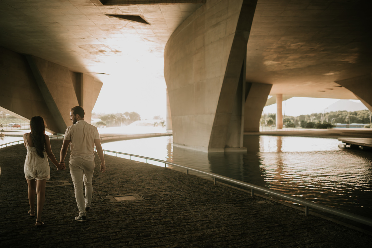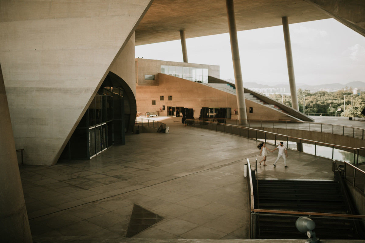 Marcela e Lincoln disseram que gostaria de um ensaio diferenciado, sugeriram a Cidade das Artes aqui no Rio de Janeiro.