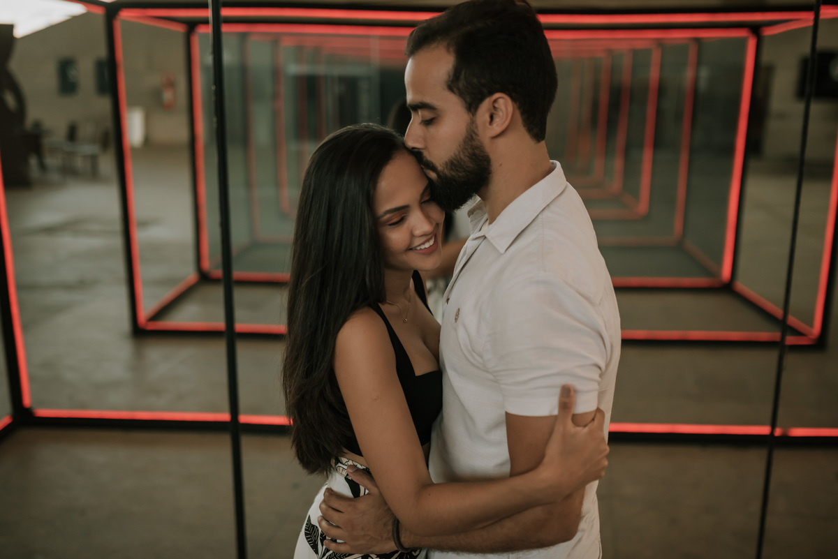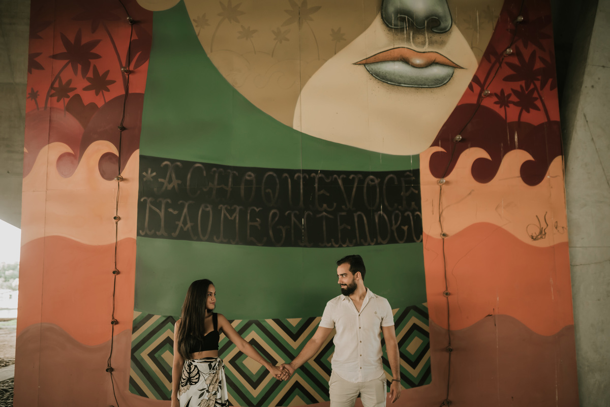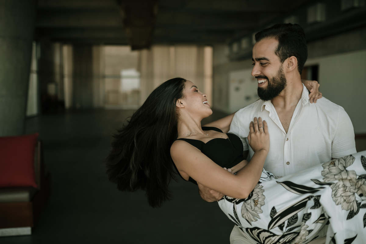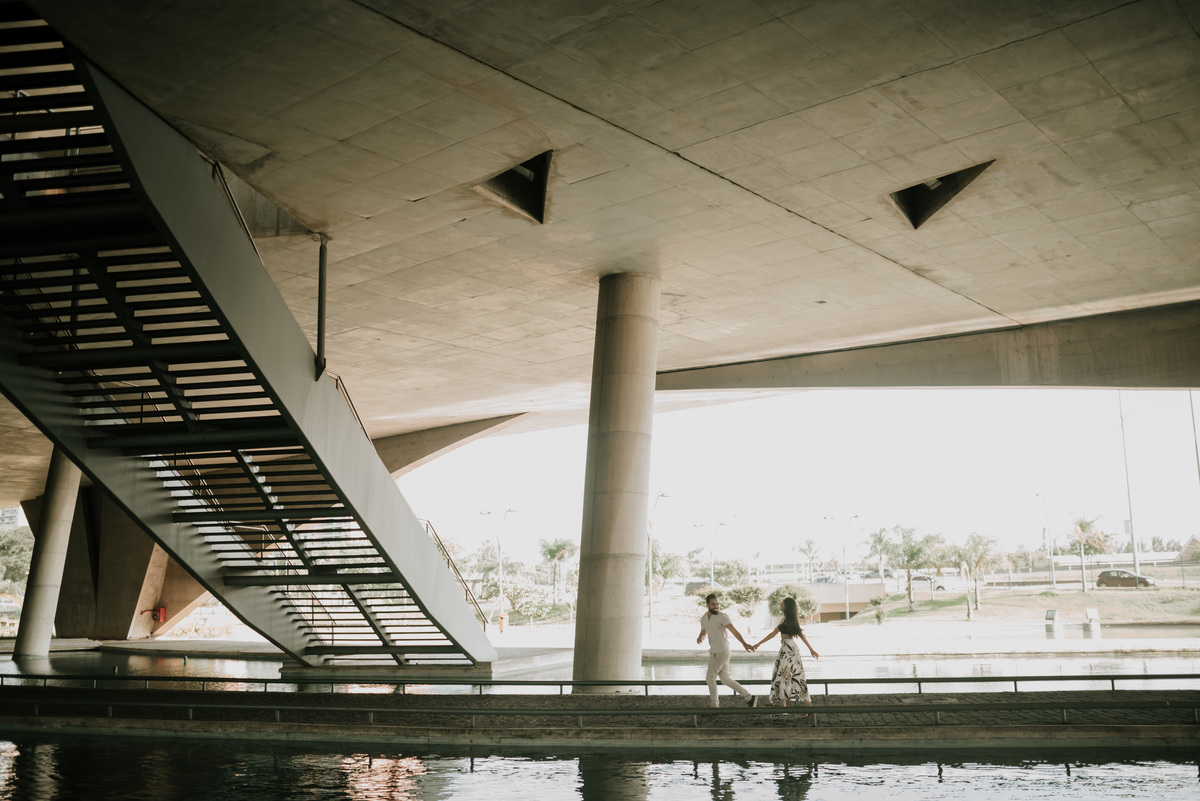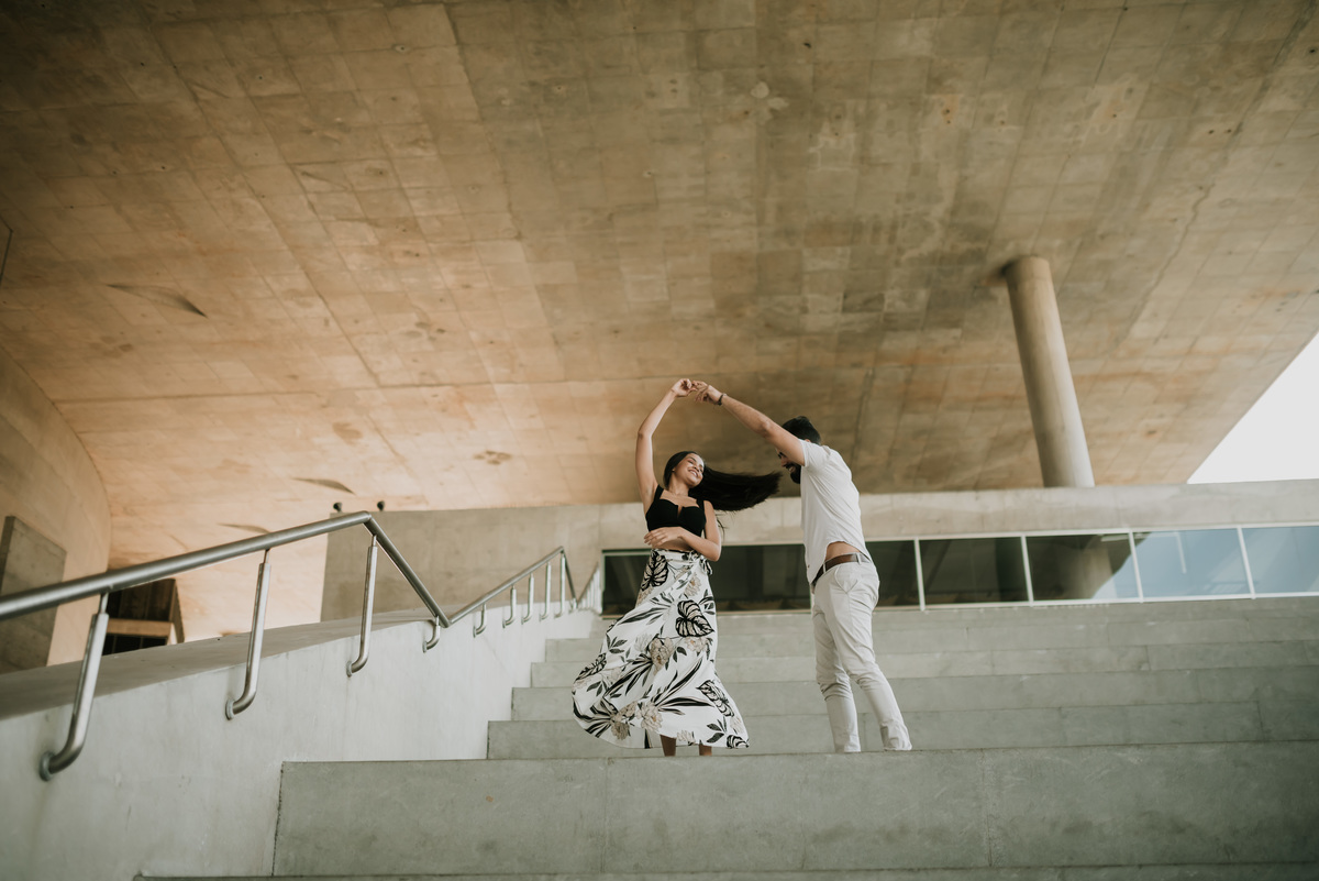 Marcela e Lincoln disseram que gostaria de um ensaio diferenciado, sugeriram a Cidade das Artes aqui no Rio de Janeiro.