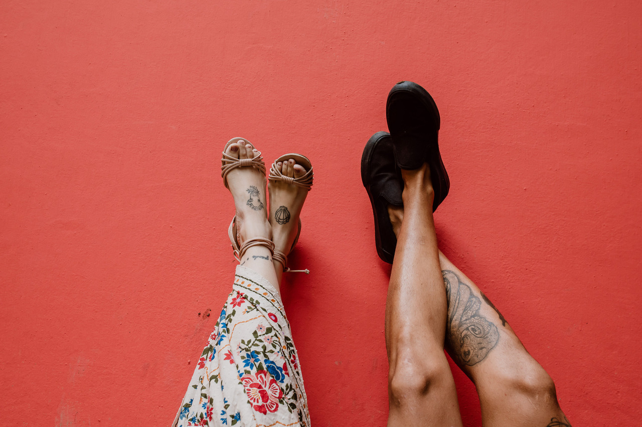 Geralmente salto alto e muito fino não funcionam para o campo, tal como uma sandália rasteira na praia. O segredo é escolher um sapato confortável e bonito, as vezes sem nada como em uma praia. No caso dos homens optem por um sapatenis ou um coturno estiloso dependendo do local escolhido para as fotos.